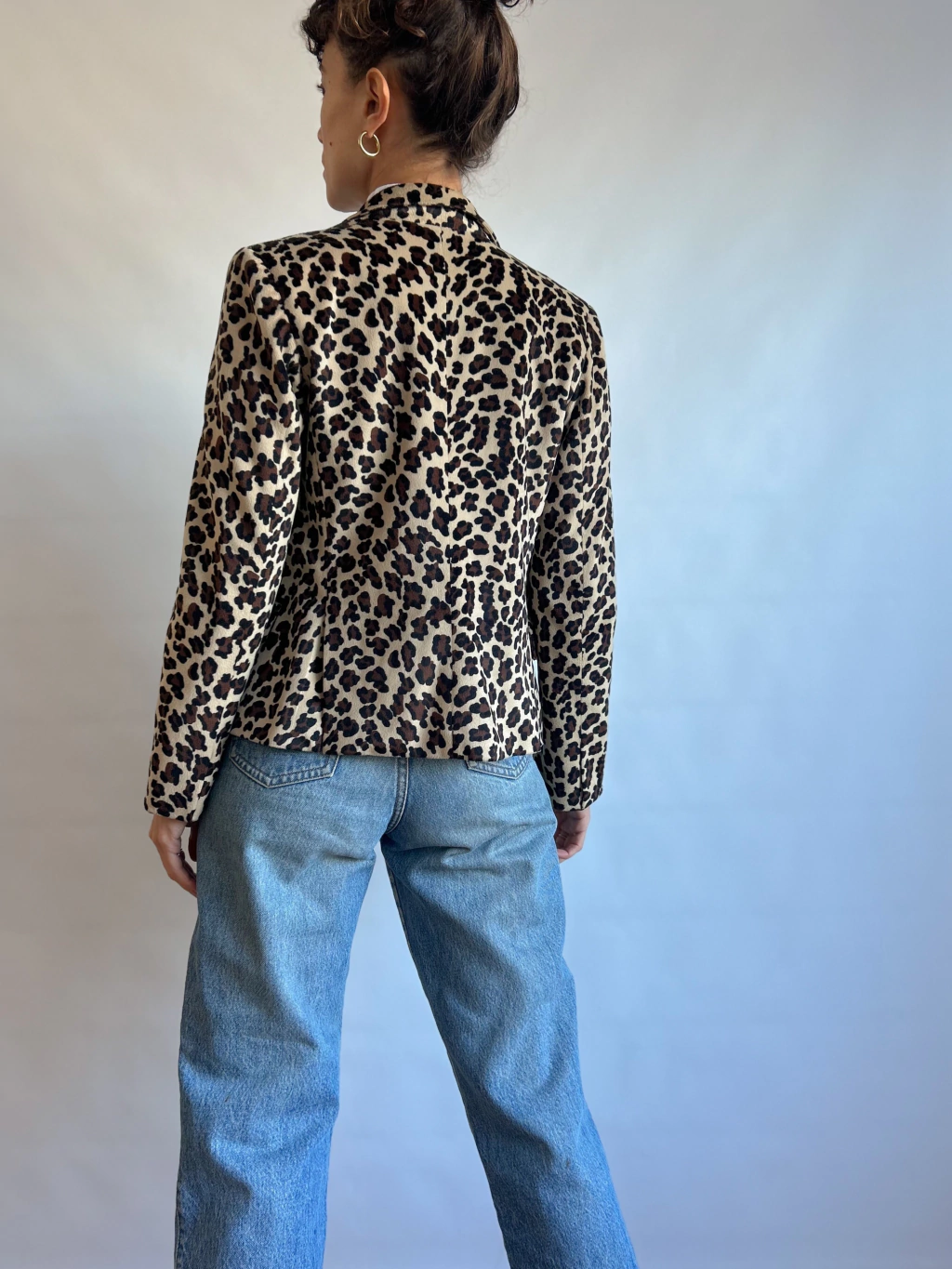 Blazer de leopardo tipo de tela tipo gamuzada suave.